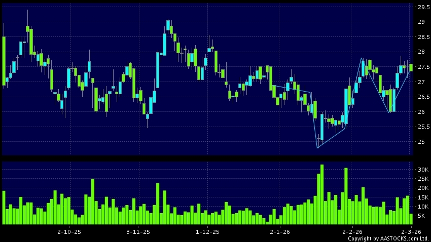 Disclaimer:The information, financial market data, quotes, charts, statistics and / or various technical analysis indicators are automatically generated based on the analyses and interpretations of publicly available information and should be used as references only at your own discretion. Such automatically generated content does not reflect the views or opinions of AASTOCKS.com Limited nor does AASTOCKS.com Limited make any guarantees to their accuracy, completeness, timeliness or correctness. You are advised to consult independent professional advice to verify pricing information or to obtain more detailed market information. Any uses of information or trades executed following the said automatically generated content are taken at your own risk for your own account.