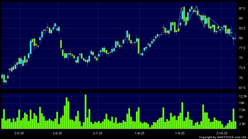 Disclaimer:The information, financial market data, quotes, charts, statistics and / or various technical analysis indicators are automatically generated based on the analyses and interpretations of publicly available information and should be used as references only at your own discretion. Such automatically generated content does not reflect the views or opinions of AASTOCKS.com Limited nor does AASTOCKS.com Limited make any guarantees to their accuracy, completeness, timeliness or correctness. You are advised to consult independent professional advice to verify pricing information or to obtain more detailed market information. Any uses of information or trades executed following the said automatically generated content are taken at your own risk for your own account.