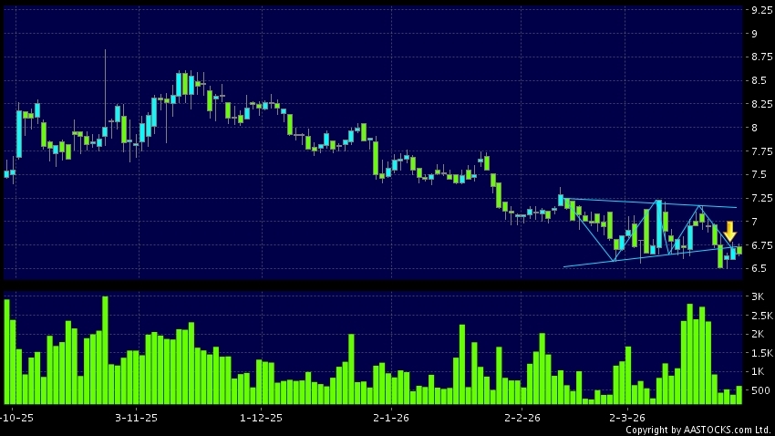 Triangle Breakout means the volatility of price movement is decreasing, stock price finally broke the bottom of triangle. A downward trend will start.(HK stocks quote is delayed for at least 15 mins.Short Selling Data as at 2026-03-27 16:25.)