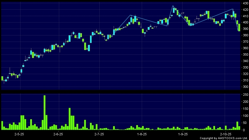 HKEX-R(80388.HK) shows a triple top reversal. Last printed at 385.200; fell 3.021%; on volume of 32.40K shares and turnover of $12.67MRecent PerformanceIn 3 days: -7.714%In 5 days:...