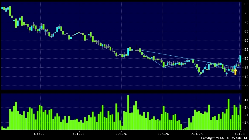 头肩底是典型的利好讯号,当股价升穿阻力线时,升势确认股价将持续上升,技术走势向好。(港股报价延迟最少十五分钟。沽空资料截至 2026-04-01 16:25。)