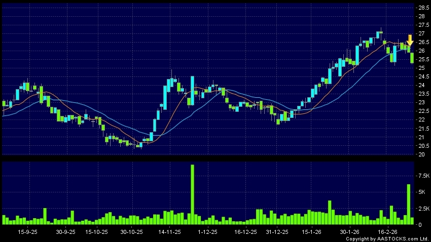 免責聲明:以上金融市場數據、報價、圖表 及/或各種技術分析指標乃根據公開資料分析和演釋自動生成的,僅作參考使用。此類自動生成的內容並不代表AASTOCKS.com Limited的立場。AASTOCKS.com Limited並不保證其準確性、完整性、實時性或者正確性。閣下應諮詢獨立專業意見,以核實定價資料或獲取更詳細的市場信息及須為所有跟隨此類自動生成的內容執行的交易或使用該內容負責。