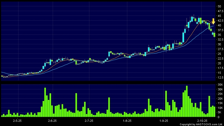 德昌電機控股(00179.HK) -2.100 (-5.814%) 沽空 $3.84千萬; 比率 8.058% 10天移動平均線跌穿20天移動平均線,出現死亡交叉。現價報33.920,下跌6.091%,成交量1.14千萬股,成交額3.96億。