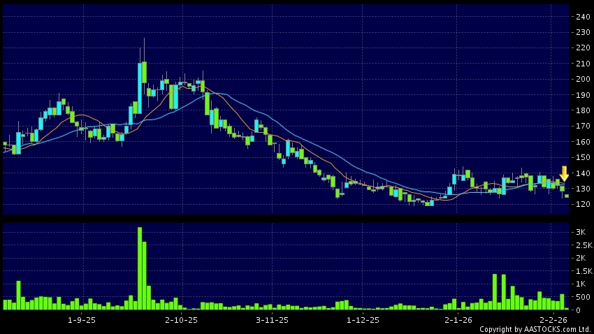 死亡交叉是一個利淡信號,指股價的短期移動平均線跌穿長期移動平均線,例如50天線跌穿250天線,在圖表上構成交叉的形狀。股價通常會下跌形成一個下降趨勢,技術走勢偏軟。(港股報價延遲最少十五分鐘。沽空資料截至 2026-03-02 16:25。)